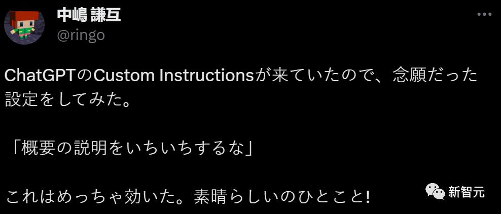 但是另外一个来自日本的网友中嶋謙互,在custom instructions功能开放以后,也尝试了对GPT-4下达「不要逐一解释回答的大纲中的每个要点」的自定义指令。