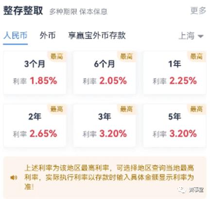 今年5月时,该行上海地区的整存整取定期存款,3年期利率最高可达3.5%,5年期利率最高可达3.4%。