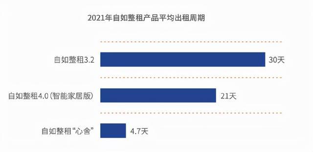 以自如整租产品为例,普通装修的整租产品平均出租周期为30天,配备智能家居的4.0风格房源平均出租周期约21天,而智能家居覆盖度、居住风格美观度再度提升的“心舍”房源则为4.7天。