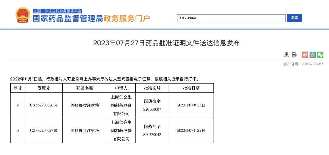 而紧随其后刚刚获批的贝那鲁肽则为 1 类新药,是仁会生物的原研产品。