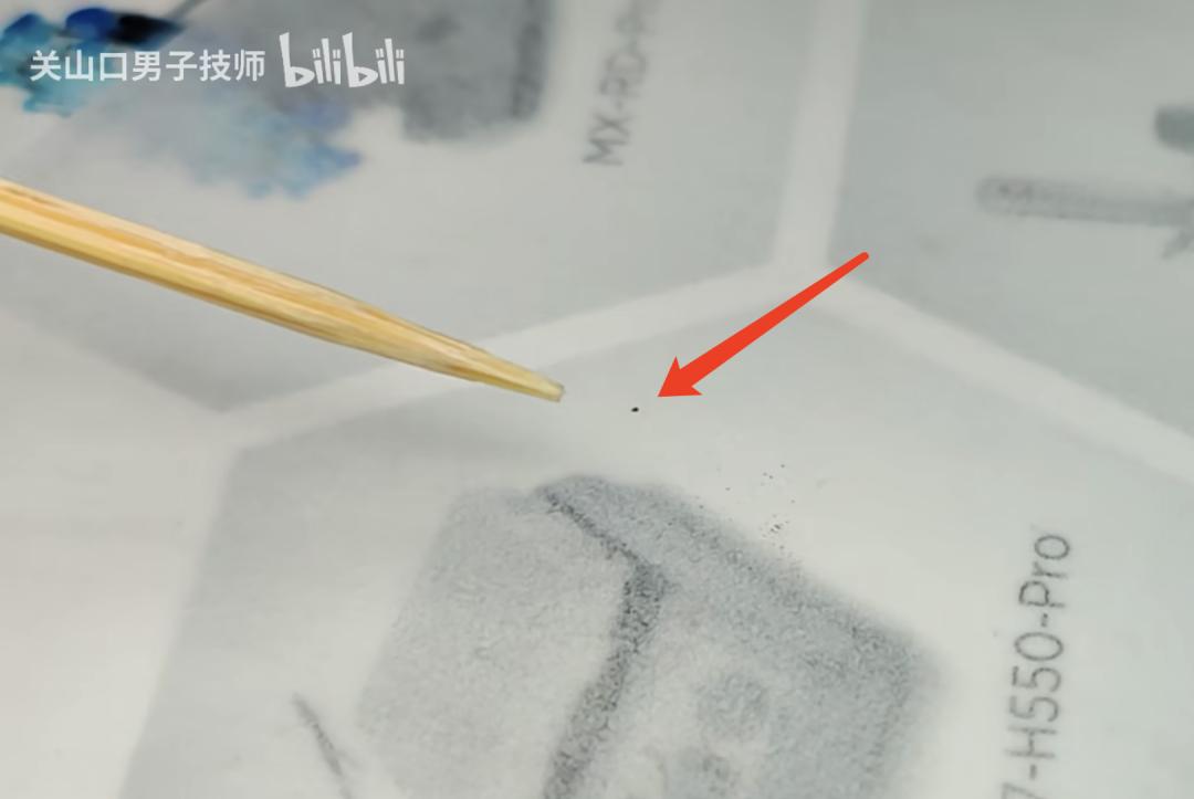红色箭头所指的就是样品,左上是一支牙签 | B站up主“关山口男子技师”视频截图