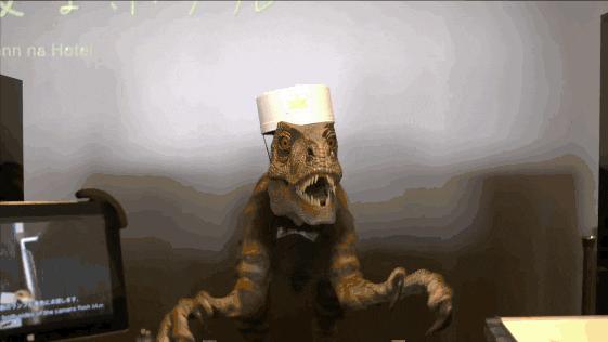 这是世界首家机器人酒店——海茵娜酒店,这个仿佛从侏罗纪公园中走出的恐龙便是这家酒店前台的服务员,乍一看还有些吓人。