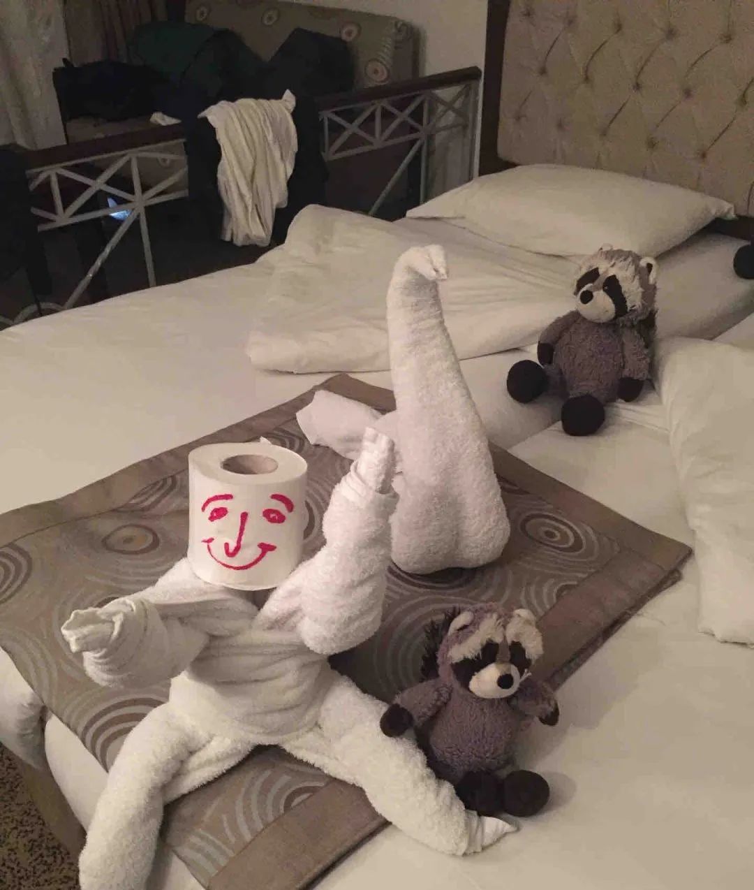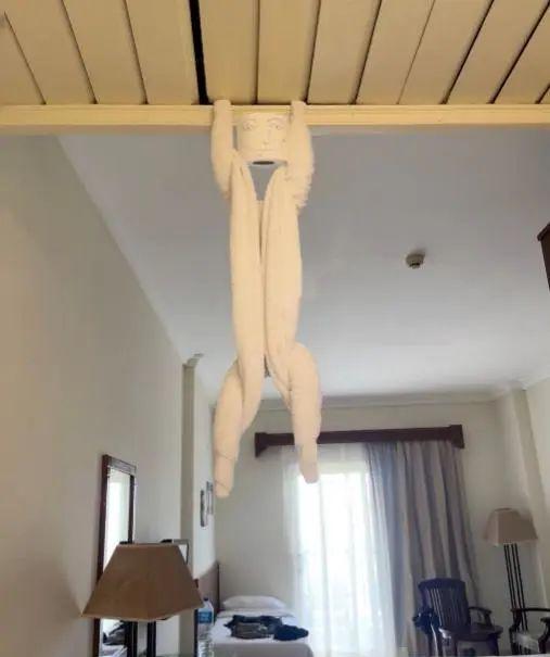 如果说酒店用毛巾送了你一个小惊喜,那么退房时留一份小惊吓便是礼尚往来了。
