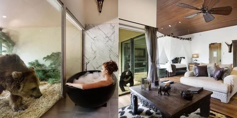 澳大利亚的加马拉旅馆以野生动物为主题,用玻璃将房间与动物隔开,为住客们打造了居住体验与观光体验兼具的主题房间。