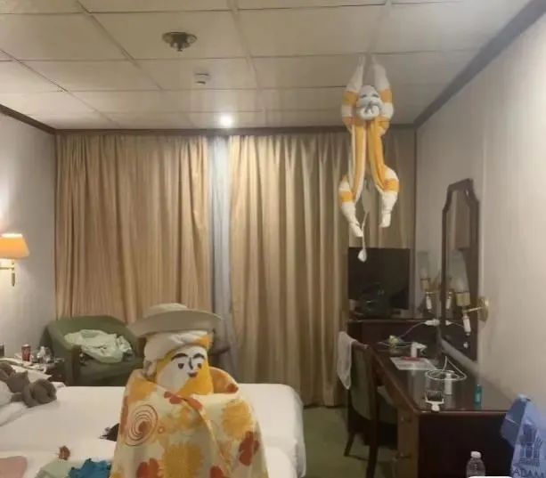 当然,各地酒店的毛巾艺术有高光时刻,就也会有翻车瞬间。