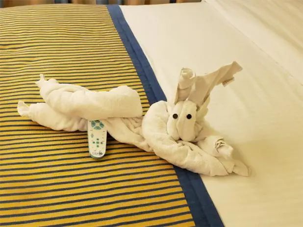 埃及酒店的服务员还会充分利用房内的物品,为自己的毛巾大作添砖加瓦。