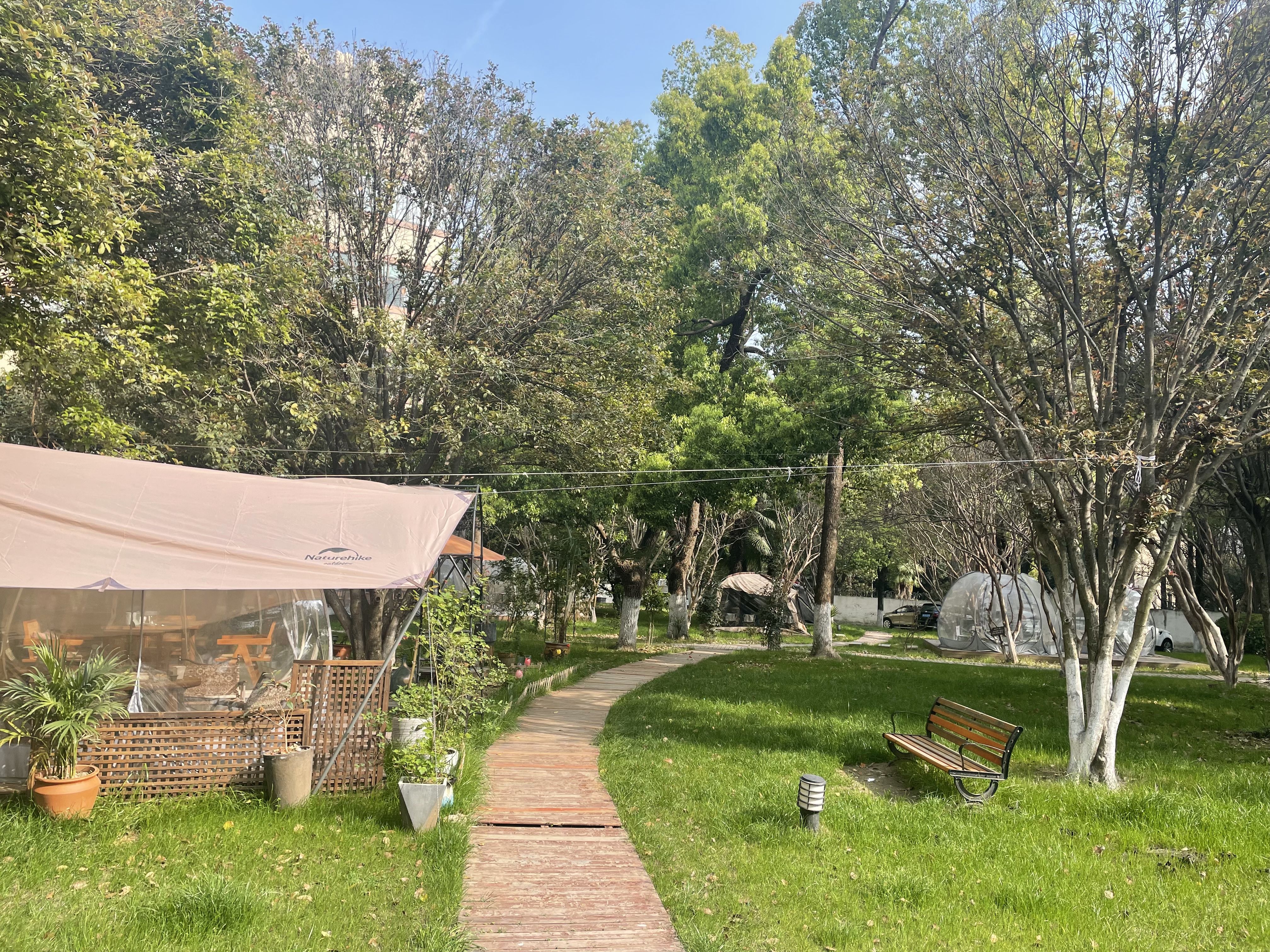 油画般的草坪,摆上几张露营风的桌椅,从吧台端来几杯手冲咖啡,三五好友坐下悠闲地聊天——这或许是很多人理想的生活状态。