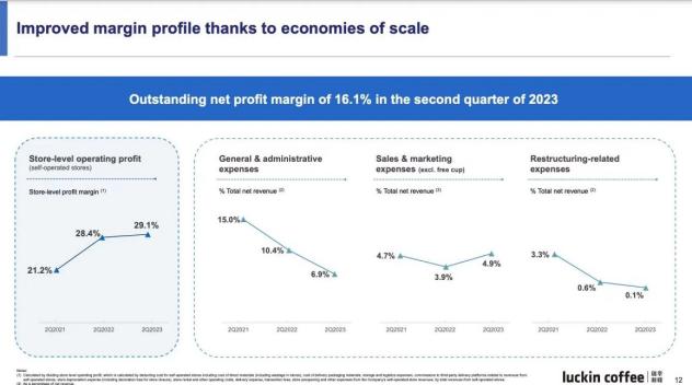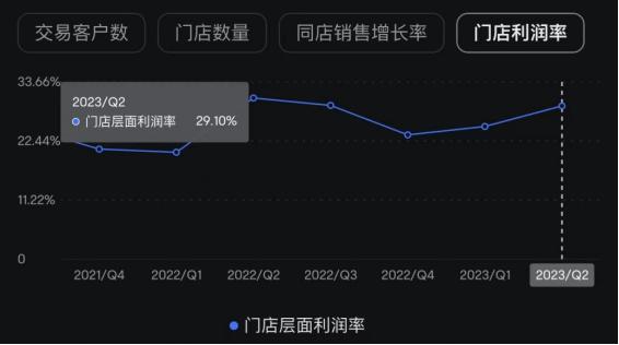 财报中披露,近10亿的净利润创下了瑞幸单季最佳表现,利润率也环比提升了6个百分点。从门店经营数据来看,同店销售额增长率达20.8%,门店利润率达29.1%,均已回归到2022年三季度的水平。