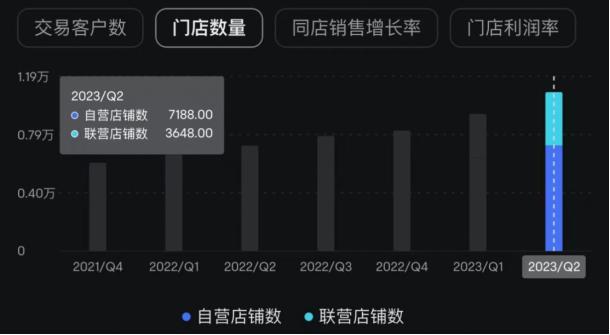 我们看到瑞幸的拓店速度非常快,已经提前实现了开设1万家门店的目标。截至二季度末,瑞幸门店总数达到10836家,其中自营门店7188家,联营门店3648家,正式成为中国市场首个门店数量突破1万的连锁咖啡品牌。