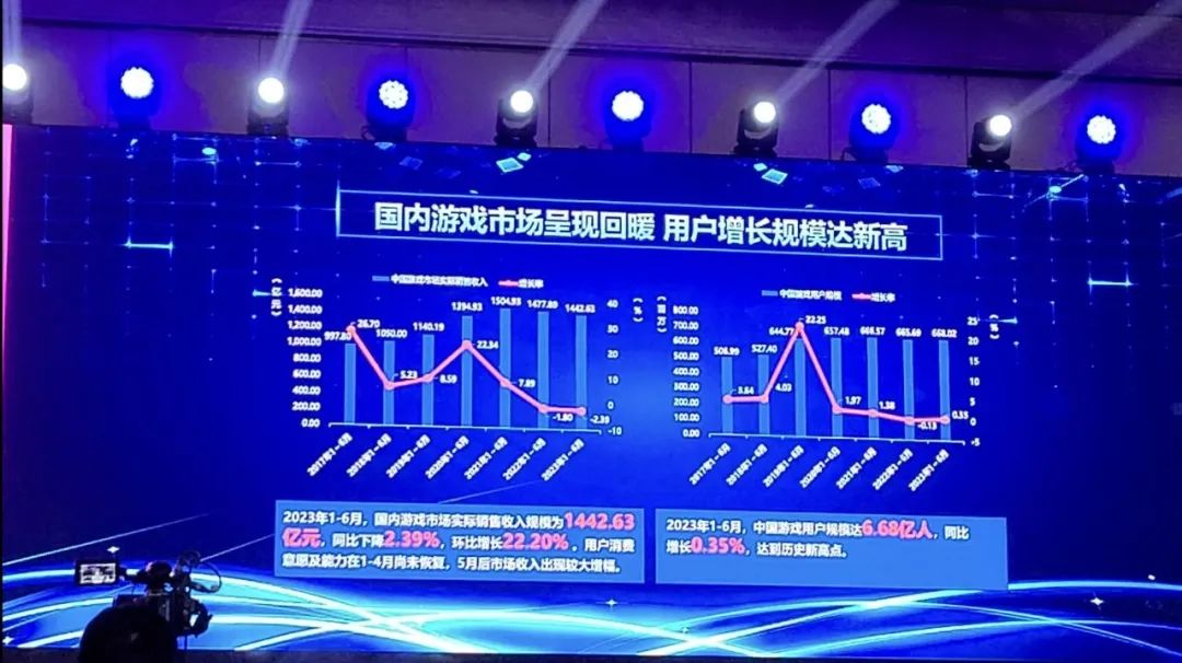 在CJ开展之前,中国国际数字娱乐产业大会(CDEC)打下头阵。在大会上,中国音数协第一副理事长、游戏工委主任张毅君对外发布了《2023年1-6月中国游戏产业报告》。