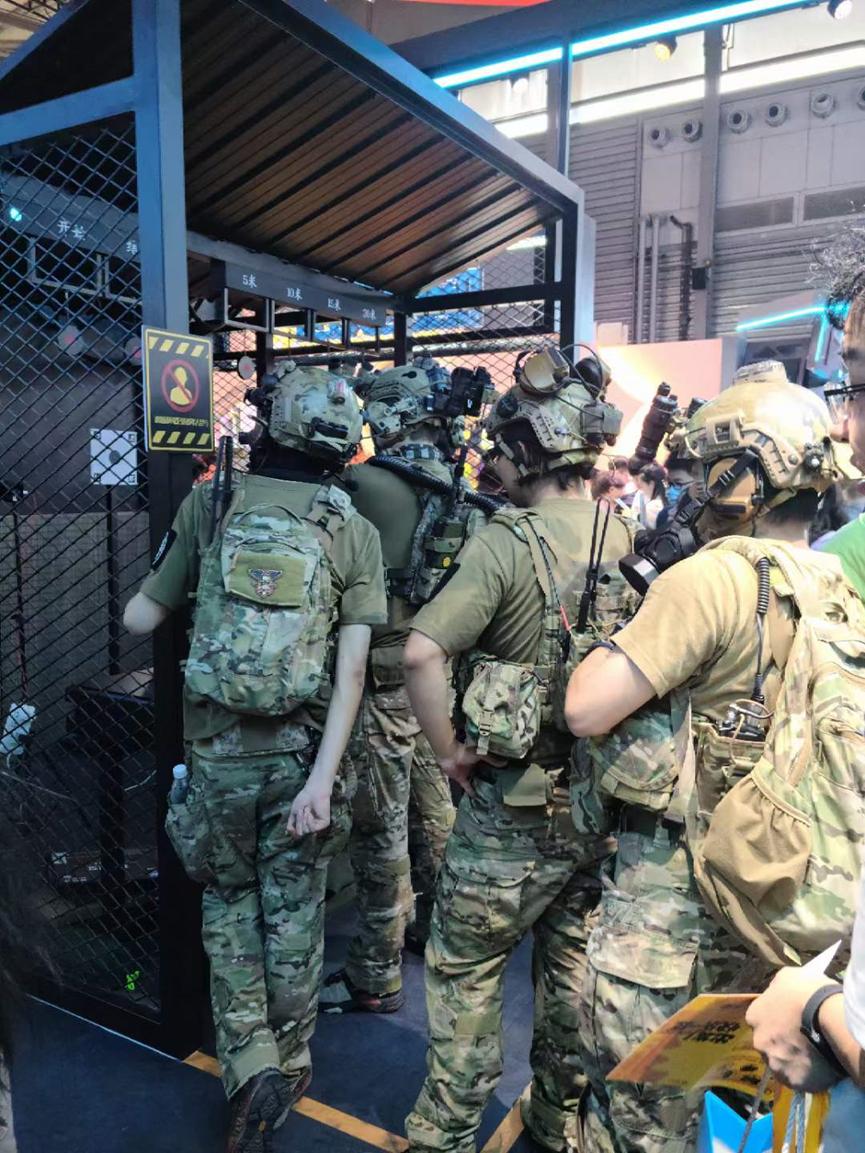其他的如《暗区突围》《高能英雄》《命运方舟》《火影忍者手游》《使命召唤手游》等游戏在展台内外都有各自的分区,也准备了各种形式的小游戏,如转盘抽奖、拍照、打枪等。 有趣的是,手游矩阵从腾讯展区出来的时候,几位军迷坐在地上休息,直呼“连特种兵也逛不动了”。