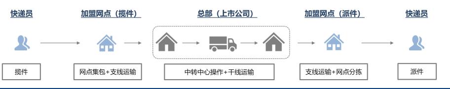 快递加盟制链路示意图(图中灰色部分为通达系把控部分,其余为加盟商把控)