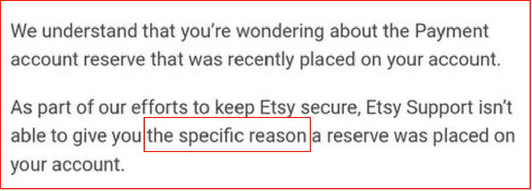 但Esty本次扣留资金的理由不充分,很笼统,甚至在回复卖家的邮件中表示,不会针对资金扣留给出具体的理由和解释。