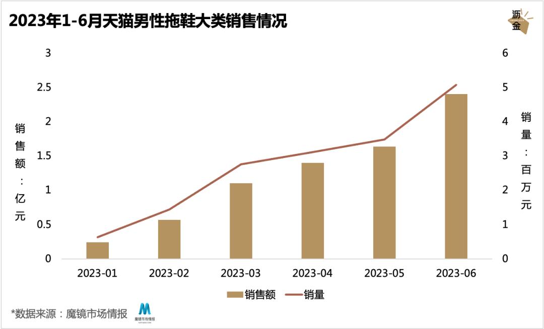 2023年1-6月天猫男性拖鞋大类销售情况