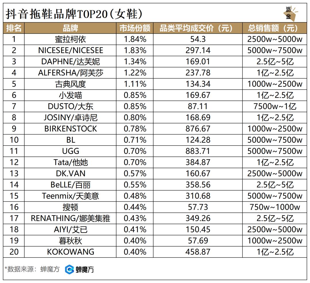 抖音拖鞋品牌TOP20(女鞋)