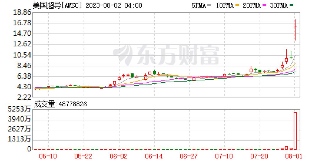 当日,A股市场上超导概念股永鼎股份、百利电气涨停;美股美国超导收涨60%,近5个交易日,该股累计上涨约130%,目前股价已接近近三年高位。
