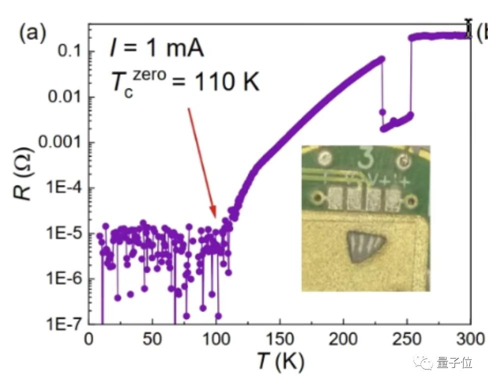从实验结果上来看,材料在高温情况下出现了半导体行为,而关键是到了110K的时候,样品的电阻基本上降到了0!