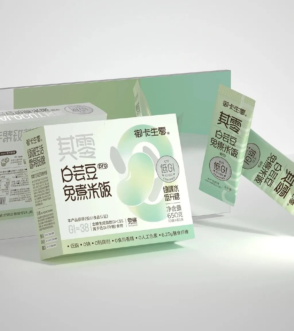 作为低GI主食创新品牌,御卡生零推出了全新的“其零”白芸豆免煮米饭,御卡科技和白芸豆行业原研机构云南天保桦通过深度合作,联合研发的御卡1号(MYK-1)”白芸豆提取物,通过与大米的创新搭配,将传统精白米饭的GI值从83成功降至32。