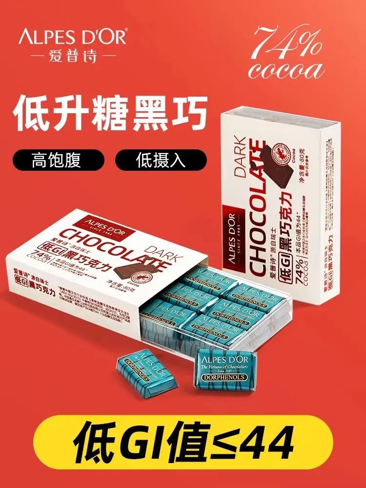 澳大利亚品牌FYTO THE FROG创造出了世界首款全蔗糖配方的低GI儿童牛奶巧克力,同时还减少了一半热量,保留美味又天然健康。瑞士品牌爱普诗ALPESD´OR推出了含甘蔗多酚的低GI黑巧多翡诺DORPHENOLS,GI值仅44,富含的多酚物质还能带来抗氧化的作用。