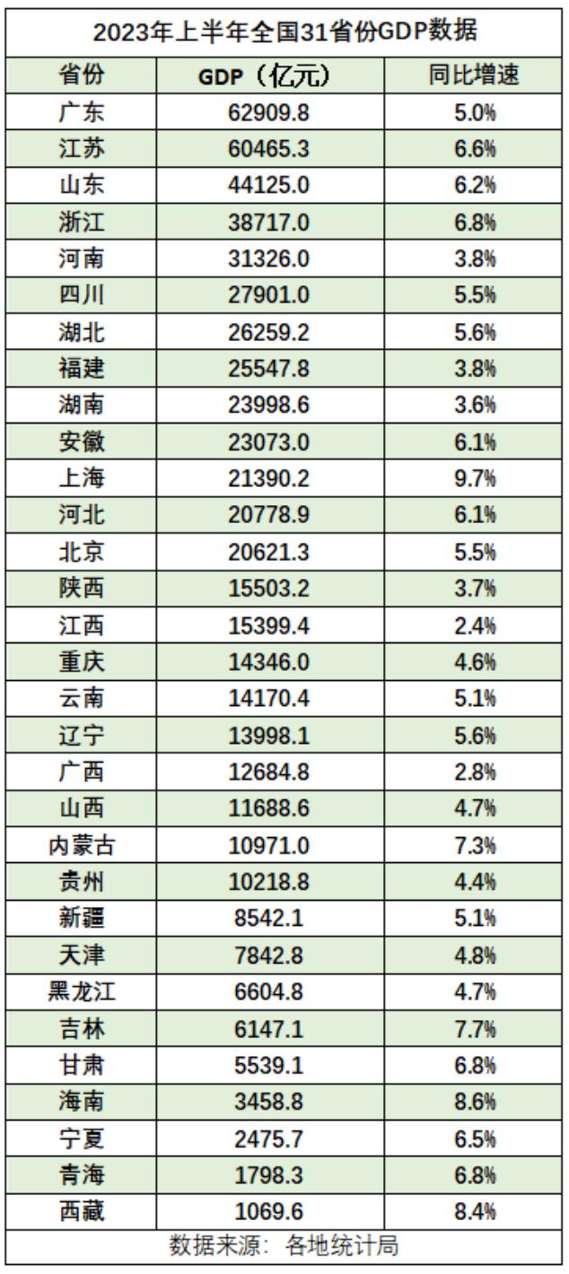 2、31省份上半年GDP出炉:15地跑赢全国,上海增势最猛,中新经纬