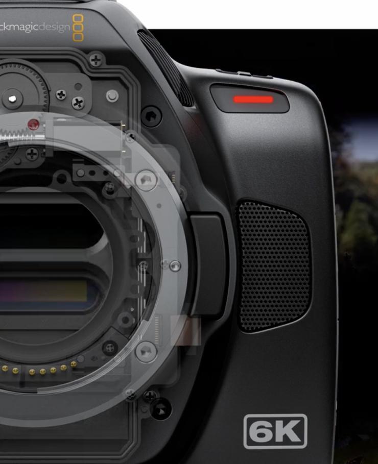 BMPCC 6K Pro 采用了 Super 35 mm 尺寸的 CMOS 传感器,分辨率为 6144 x 3456 像素,Super 35 mm 传感器我们并不陌生啊,它的物理尺寸通常介于 24.89 mm x 18.66 mm 到 24.6 mm x 13.8 mm之间,略小于 35 mm 胶片的尺寸。也就是说,这台能拍 6K 的电影机用的传感器只比半画幅传感器大一点。