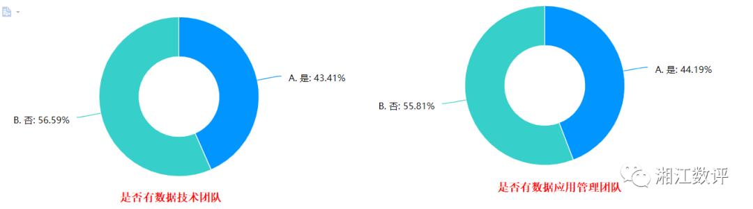 在大数据技术应用的组织建设方面,此次调研中我们看到企业需要提升的一面,只有43%的企业表示具有数据技术团队,有44%的企业表示具有数据应用管理团队,也就是说虽然企业引进了大数据技术及平台,但在技术及应用管理方面仍需要全面的提升,这也从一个侧面反映了企业对于数据的认知及重视程度,有技术不管理任其野蛮生长,或者说只把大数据当做一个展示窗口,这也就造成了大数据应用的深度,也说明了大部分企业在大数据应用方面只是皮毛级别。