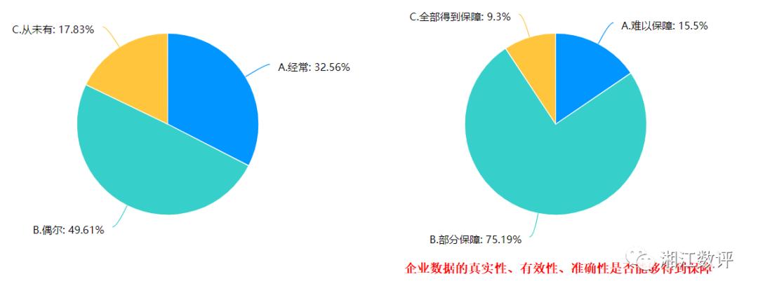 ”调研中有近57%的企业表示偶尔会有,而近24%的企业表示从未有过,所以若想企业数据能力提升,加大日常培训学习力度是关键。