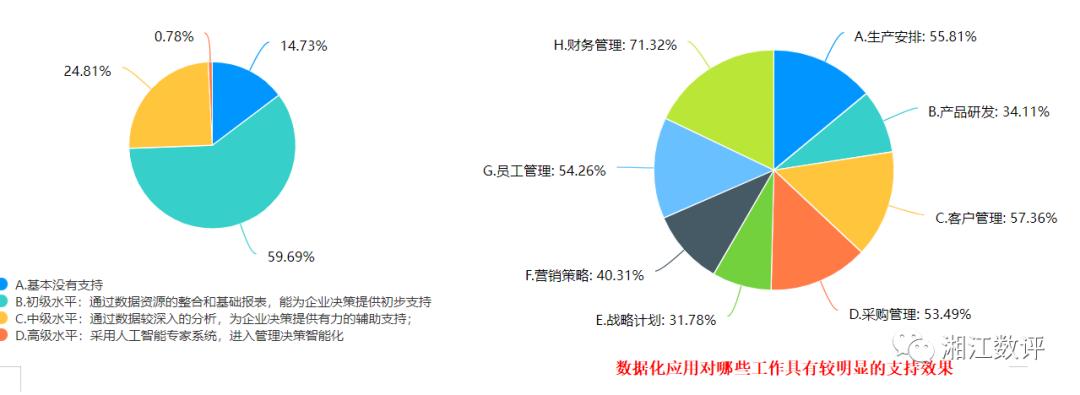 在此次调研中有一个特别有意思的现象就是能够应用大数据技术的企业都是处于成熟及成长期,这也从一个侧面反映出只有处于高速发展期或有实力的企业才能够进行数据化的应用建设,但随着数字化技术的普及应用,我们也看到有15.5%的初创期企业也在应用数据化,由此可见大数据技术也在慢慢影响着初创期企业。