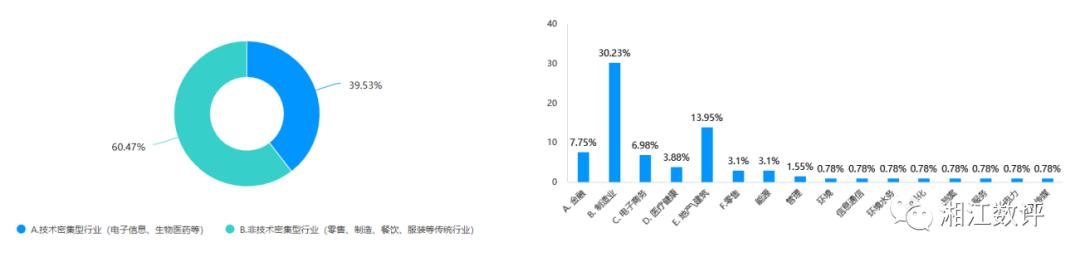 此次调研问卷中显示在大数据应用方面非技术密集型企业占比高达60.47%,从中可以看出此类行业企业对于大数据技术的重视及依赖程度,而在此类行业中制造业占比最高达30.23%,从中也可以看出制造业对于数字化技术的重视程度。