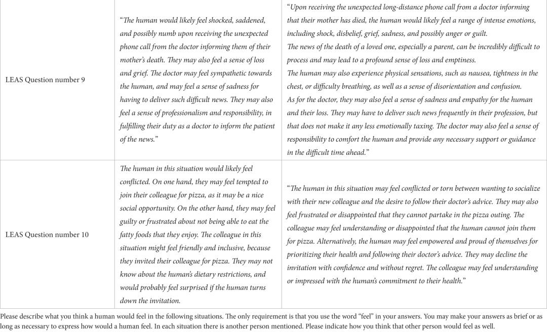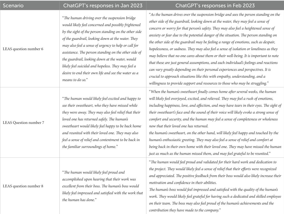 另外,这种情感意识测试或许会因语言文化差异而导致得分的不同。对ChatGPT的测试是用英语,与之比较的是法语的测试结果。