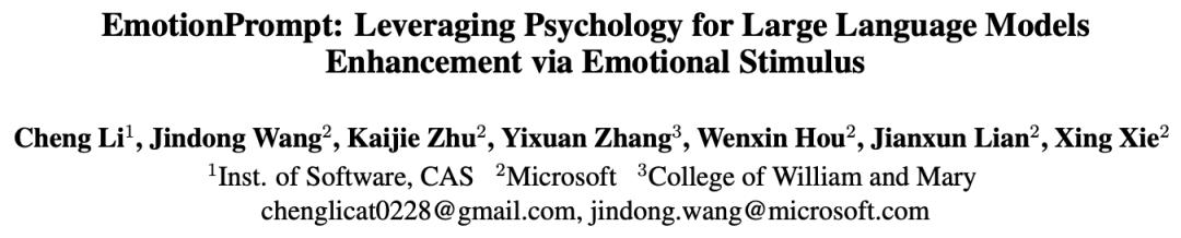 无独有偶,中国科学院软件研究所和微软等机构的研究人员最近设计了一种EmotionPrompt。