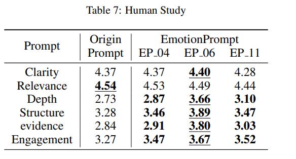 为了从更多方面探索Emotion Prompt的影响,研究人员进行了一项人类研究,以此获得评估LLMs输出的其他指标。