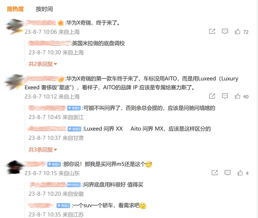 这一细节,顿时引发了网友们对这款华为智选车命名的热议。有网友表示:“看样子,AITO的品牌IP应该是专属给赛力斯了。”