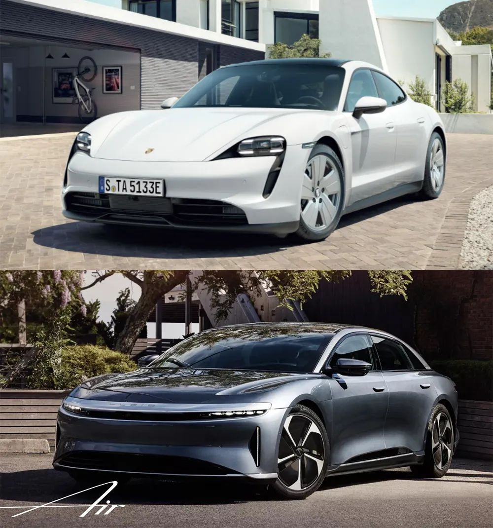 从图片中可以看出,新车整体流线型很好,搭载瞭望式的激光雷达,前脸看上去有点像保时捷Taycan,又有点像Lucid Air。