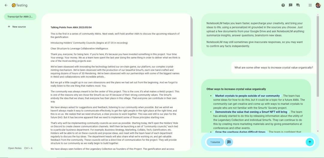 第三, NotebookLM 不仅仅用于问答,还能够帮助人们提出新想法。