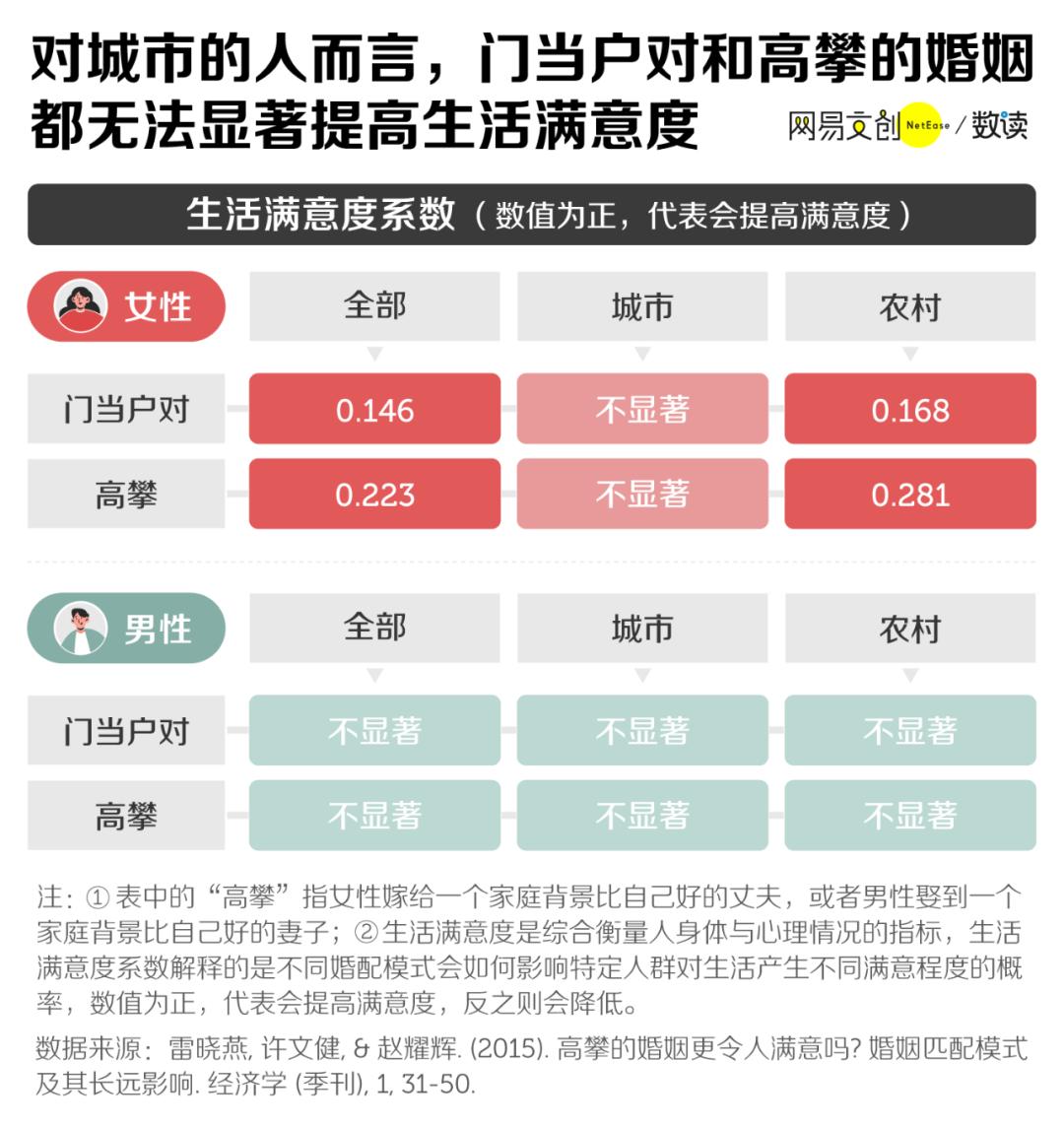 北京大学有研究发现,门当户对或高攀的婚姻能否提高人们对生活的满意度,和自身的经济条件还是有很大关系的 [6]。