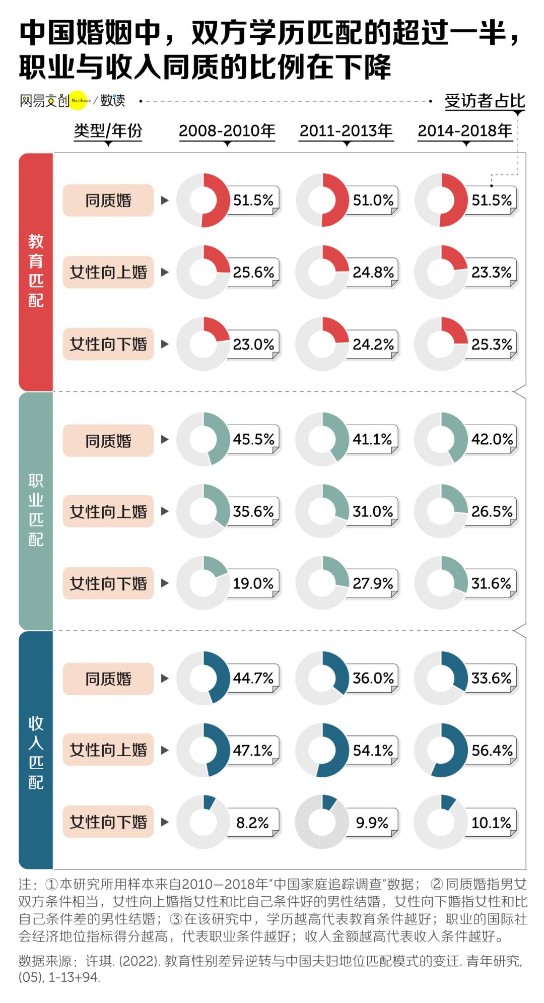 其中,随着女性整体学历的不断提高,高学历女生匹配低学历男生的婚姻占比不断增加 [4]。