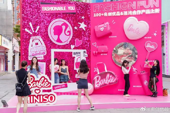 国内的联名大头零售商名创优品,就在《芭比》上映之际展开了大规模的系列联名活动。