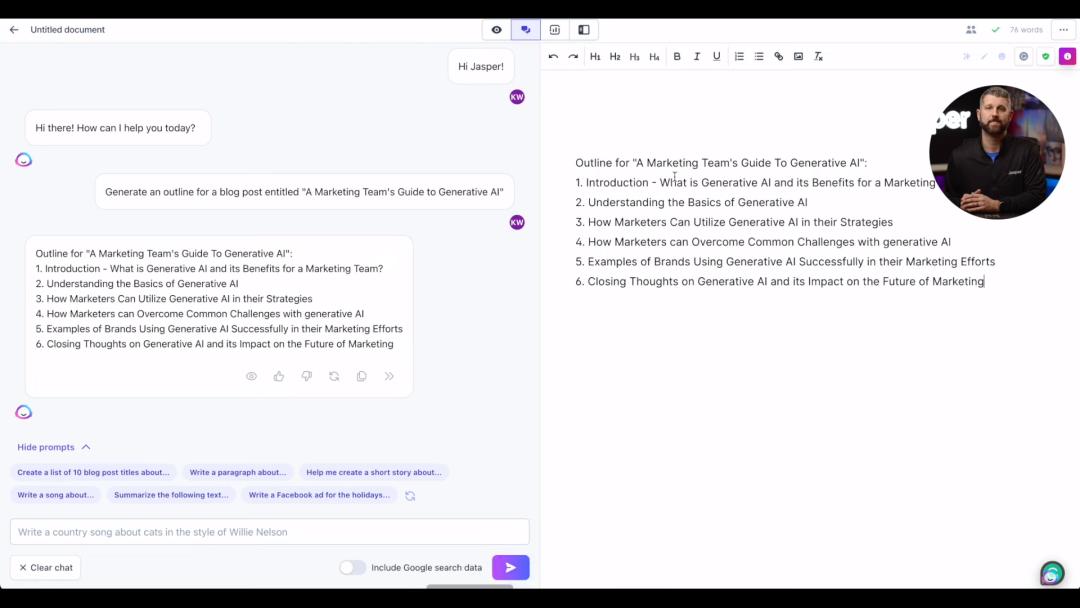 加入聊天功能后的Jasper AI