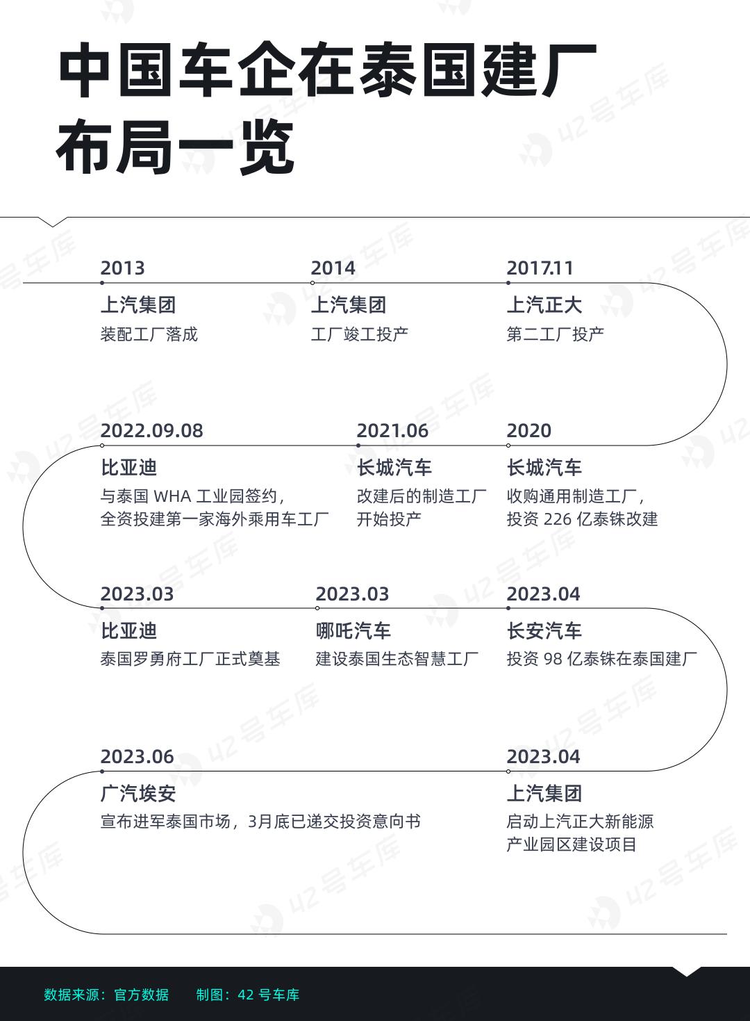 除了比亚迪,也有一波中国车企也在 2023 年纷纷公开发布了在泰国建厂的计划,具体来看:
