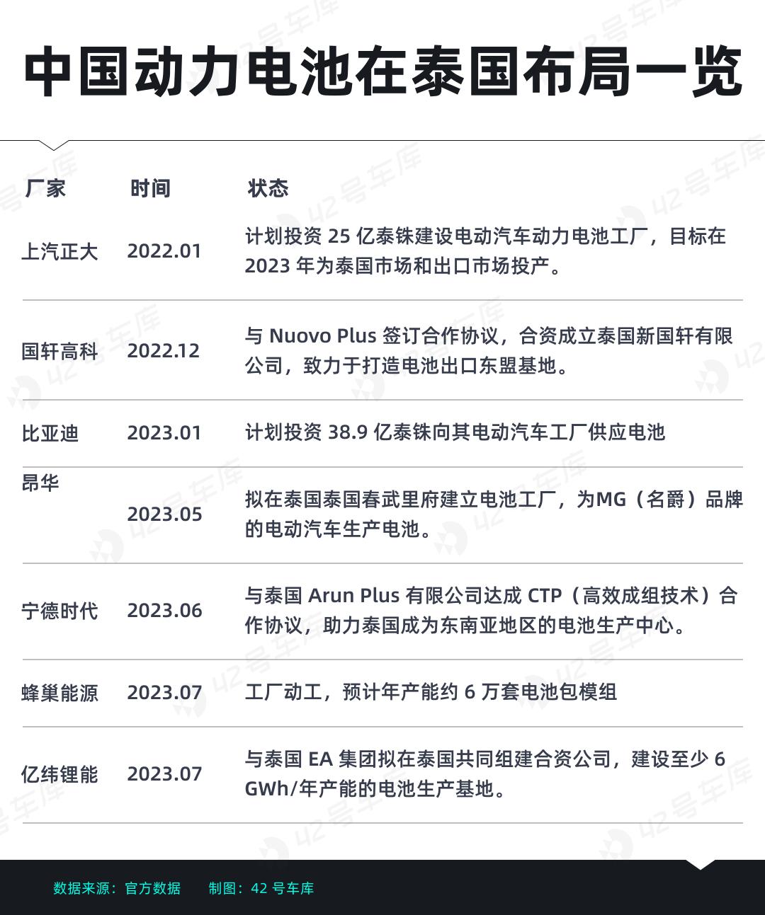而在泰国政策的引导之下,中国企业也纷纷开始布局泰国新能源汽车产业链,尤其是在电池板块——实际上,宁德时代、比亚迪、国轩高科、蜂巢能源等电池及原材料企业都在泰国有相关投资与合作。