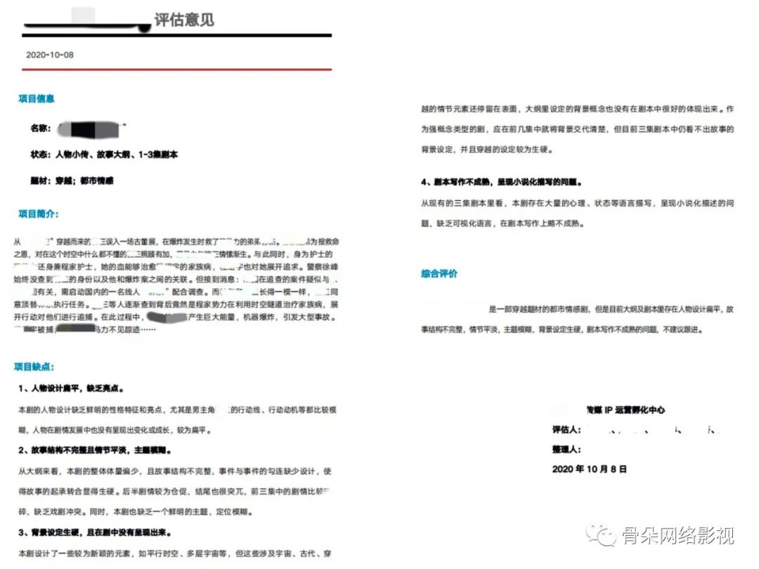 当看完这些内容后,小k需要和自己小组的成员进行简单讨论,撰写评估报告。“如果项目非常好,我们可以直接申请推送到中台,如果是小说,中台审核通过就会交由版权部进行购买,如果是成型剧本则是交由制片组。”