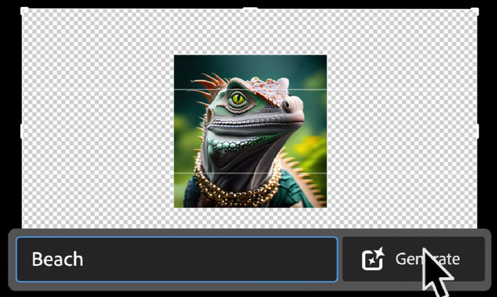 选择裁剪工具后,如果裁剪的边界超出了原始图像的画布,就会出现生成式扩展。这时会出现一个文本框,用户可以输入他们希望在扩展区域看到的内容描述,如“Beach(海滨)”,点击生成即可得到扩展后的图像。