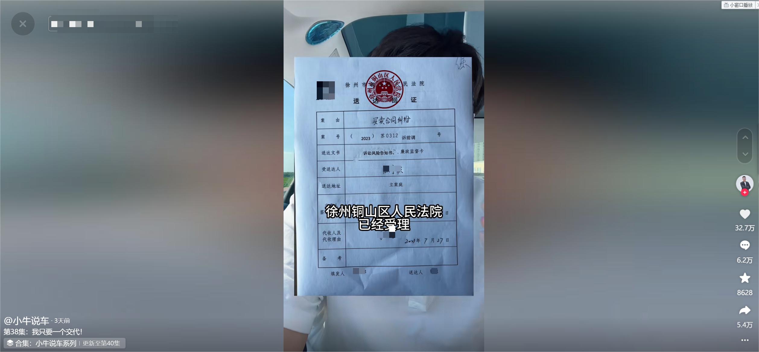 日前汽车博主“小牛说车”发视频称,已将蔚来汽车告上法庭,原因是他全款购买蔚来ES6汽车,本应于7月14日交车,但几次到蔚来门店,却被以各种理由拒绝交车。明明汽车已到店,车架号有了、发票开了,蔚来却始终不愿意给车。
