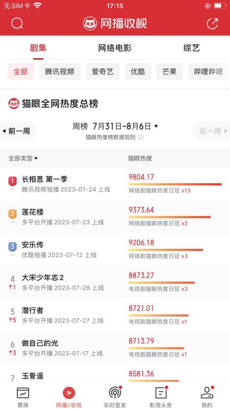 8月,剧集市场继续被古装剧“占领”,杨紫、张晚意领衔的《长相思》开局即点燃各种混搭CP粉的热情,“史上最惨女主”的另类人设,也让《长相思》续上了6月《长风渡》、7月《玉骨遥》《安乐传》的热度,连续多日稳居猫眼、灯塔、云合热度榜第一位;爱奇艺的武侠剧《莲花楼》和时隔四年回归的《大宋少年志2》相继开播,悬疑探案仍是拯救“武侠”的一味良药。
