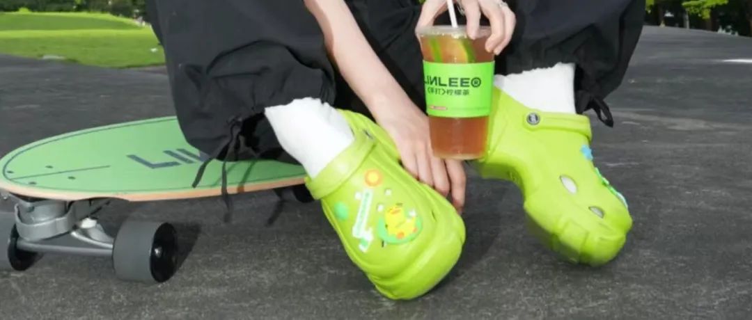 比如,柠檬茶品牌LINLEE林里,就以City Walk为契机,推出绿色洞洞鞋。