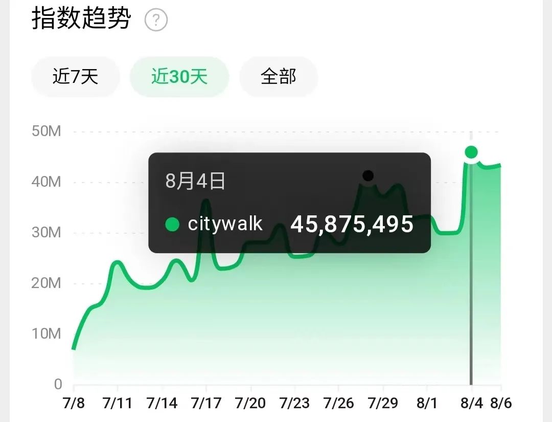 如多巴胺一样,City Walk也快速火遍全网,抖音话题已经有超7亿次播放,小红书上更是有60万+笔记。2023年上半年,小红书平台City Walk相关搜索量同比增长30倍。