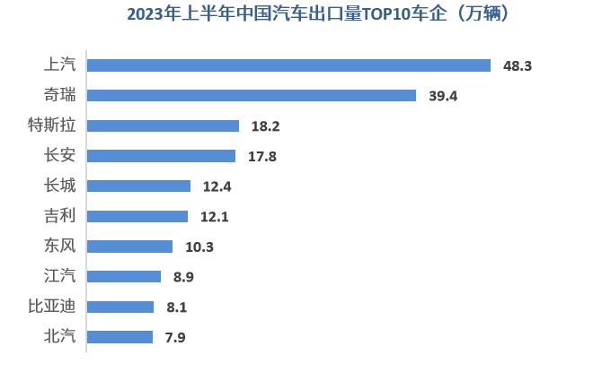 8月8日,中汽协发布的数据显示,上半年中国汽车出口234.1万辆,同比增长76.9%;如果看出口额的话,因为单车售价从1.8万美元提升到2万美元,出口金额为464.2亿美元,同比飙升了1.1倍。相比,上半年日本出口202万辆,微幅增长,被中国远远甩到了后面。
