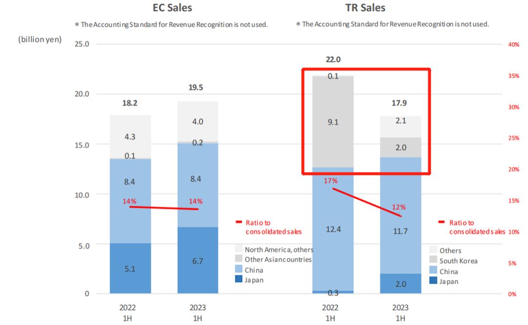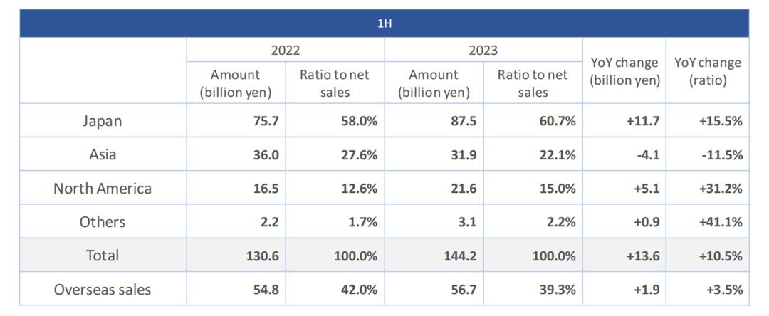 但在亚洲市场,其销售额则同比减少11.5%至319亿日元(约合人民币16.12亿元),亚洲市场的贡献也从去年同期的27.6%下滑至22.1%。
