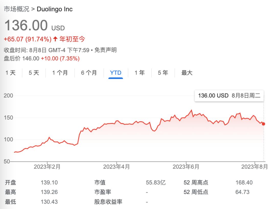 关于 Duolingo,该公司为用户提供多国语言学习产品服务,该公司称其是 Google Play 和 Apple App Store 教育类别中收入最高的应用程序。该公司2021年于纳斯达克上市。